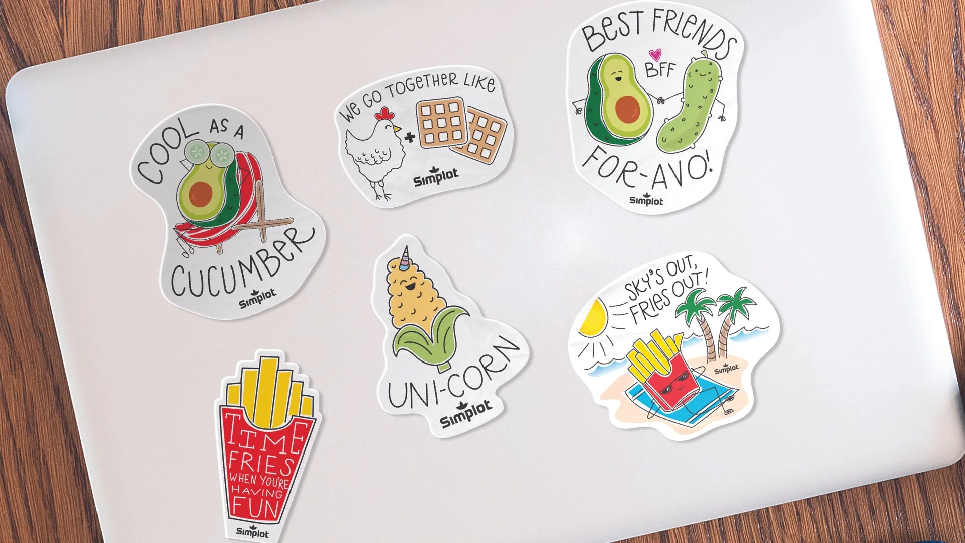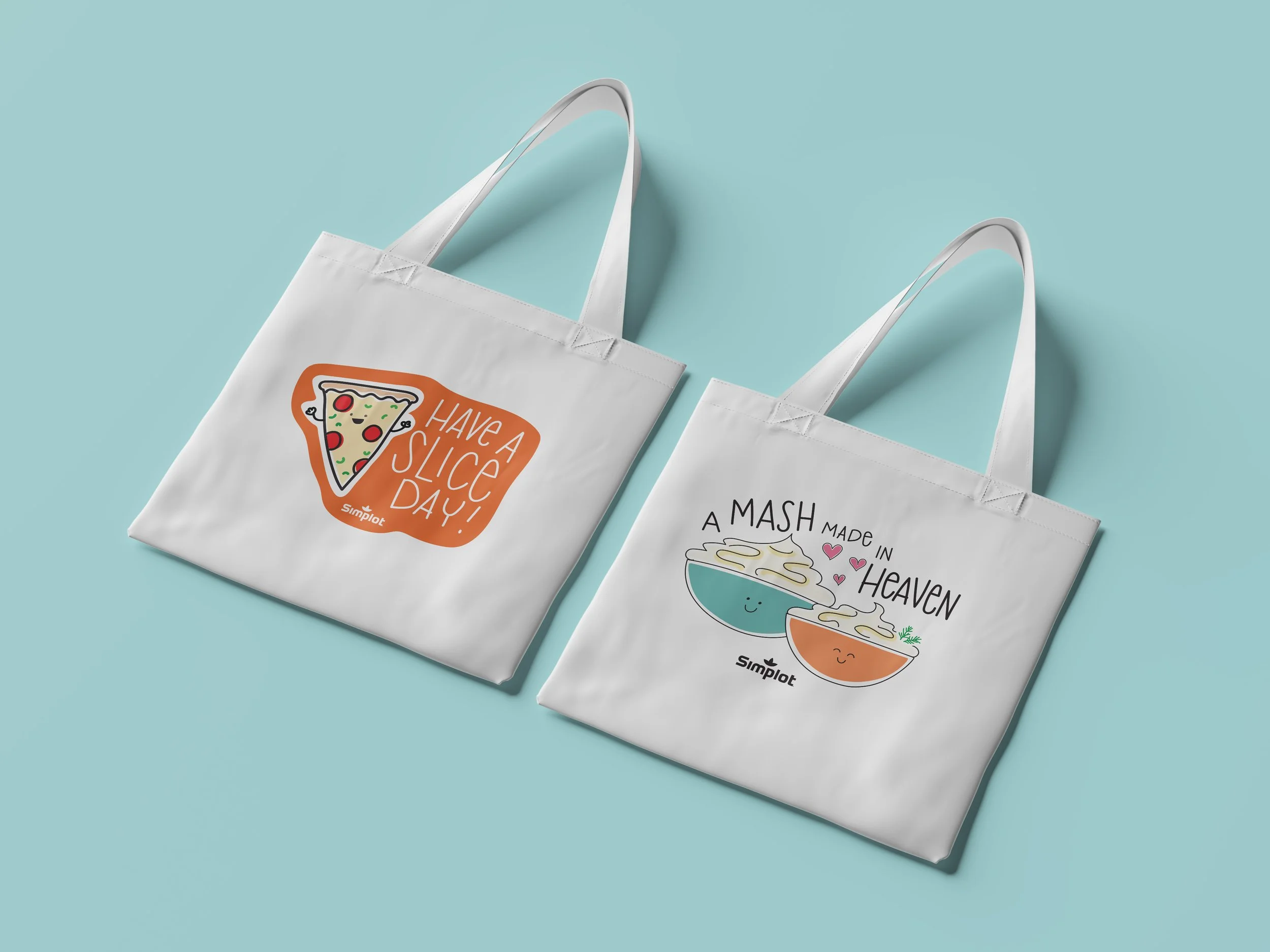 Simplot Global Foods CLIENT Everyone loves a good food pun. These fun, product-inspired graphics were custom-illustrated and hand-lettered and were a big hit on stickers and tote bags.